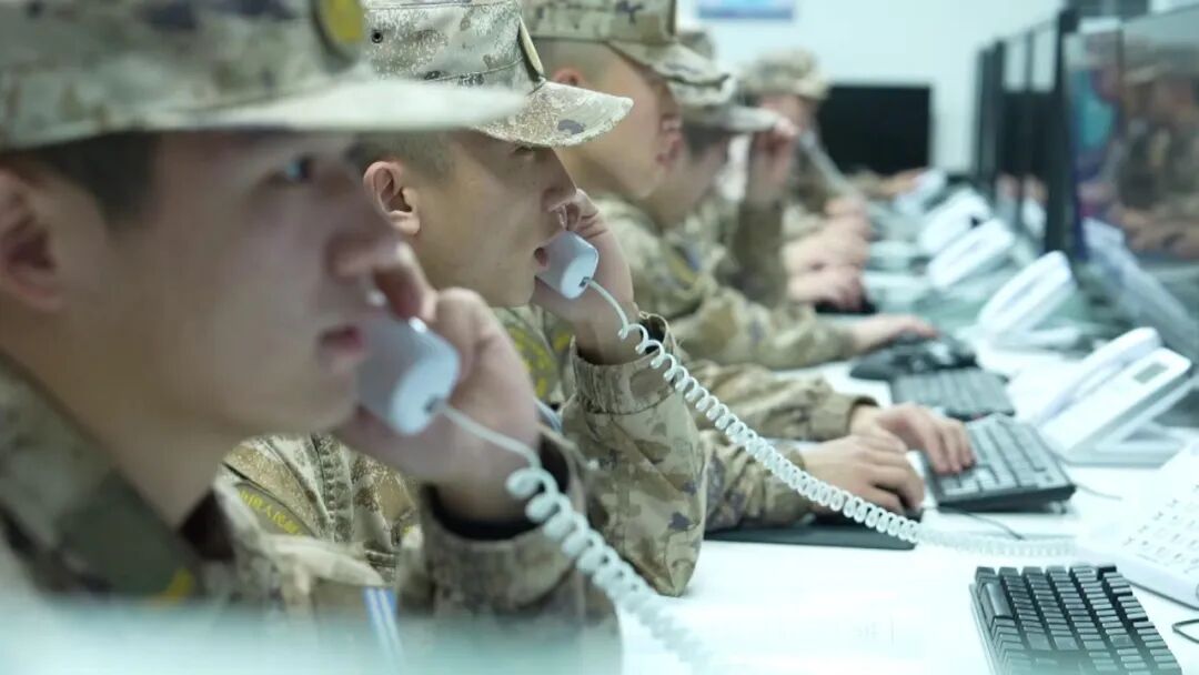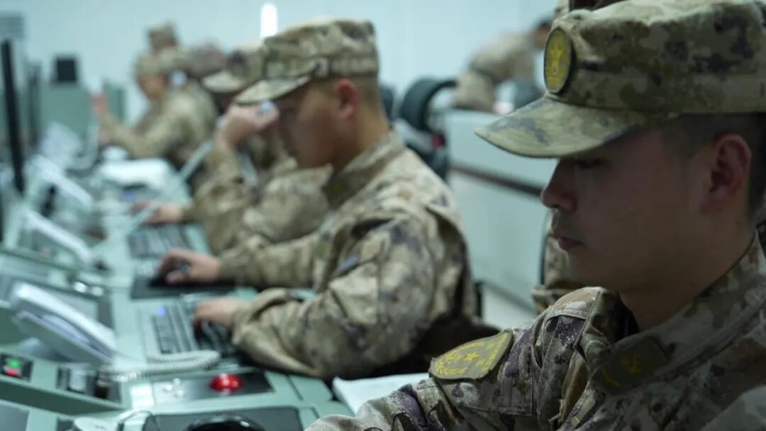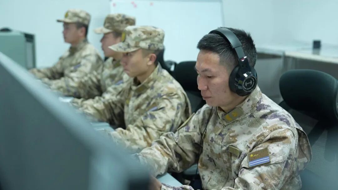 战士们紧盯面前的雷达屏幕