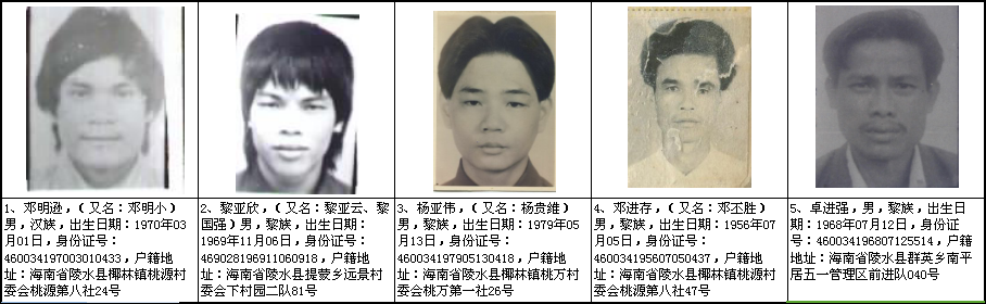 每抓1个奖20万!海南警方重金悬赏缉拿这9人,均涉命案在逃!