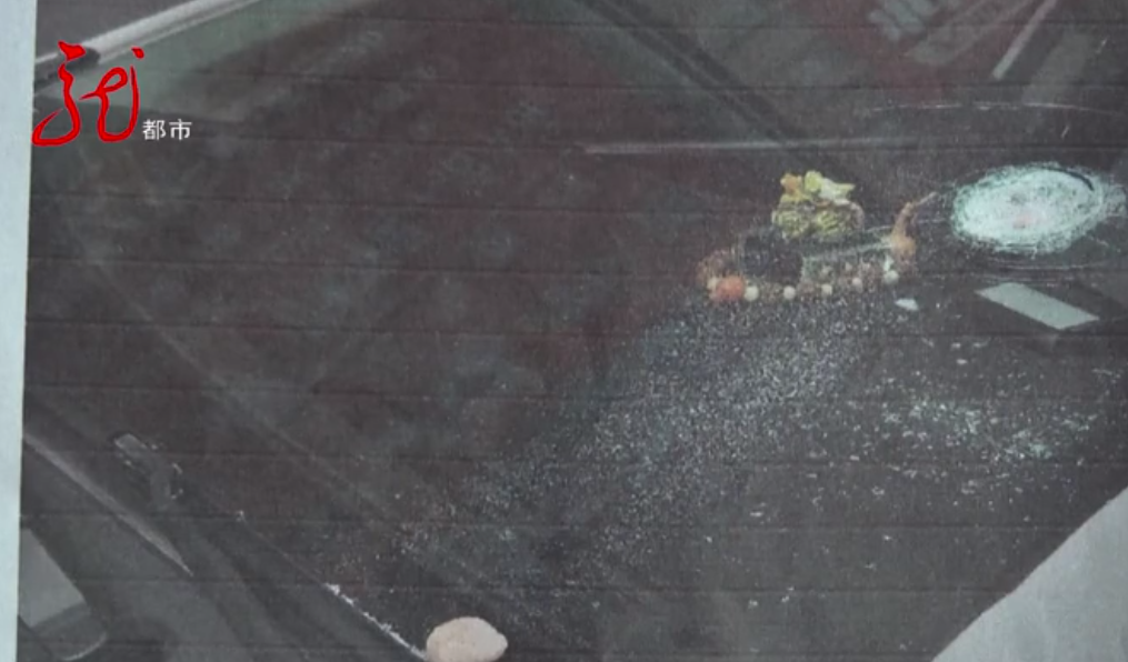 惊魂一刻!鹅卵石从32层楼顶降落,车辆挡风玻璃瞬间被砸碎!