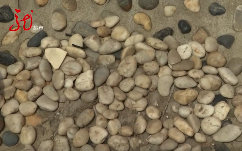 我们这块(被)扔了好多鹅卵石,大概比鸡蛋小一点儿。
