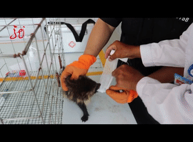 上完了药,兽医想把伤口包起来,但貉子很不老实,一个劲地挣脱。处理完伤情,民警又把它带回派出所,鱼、肉、水果,每天换着样地对它喂食照料。
