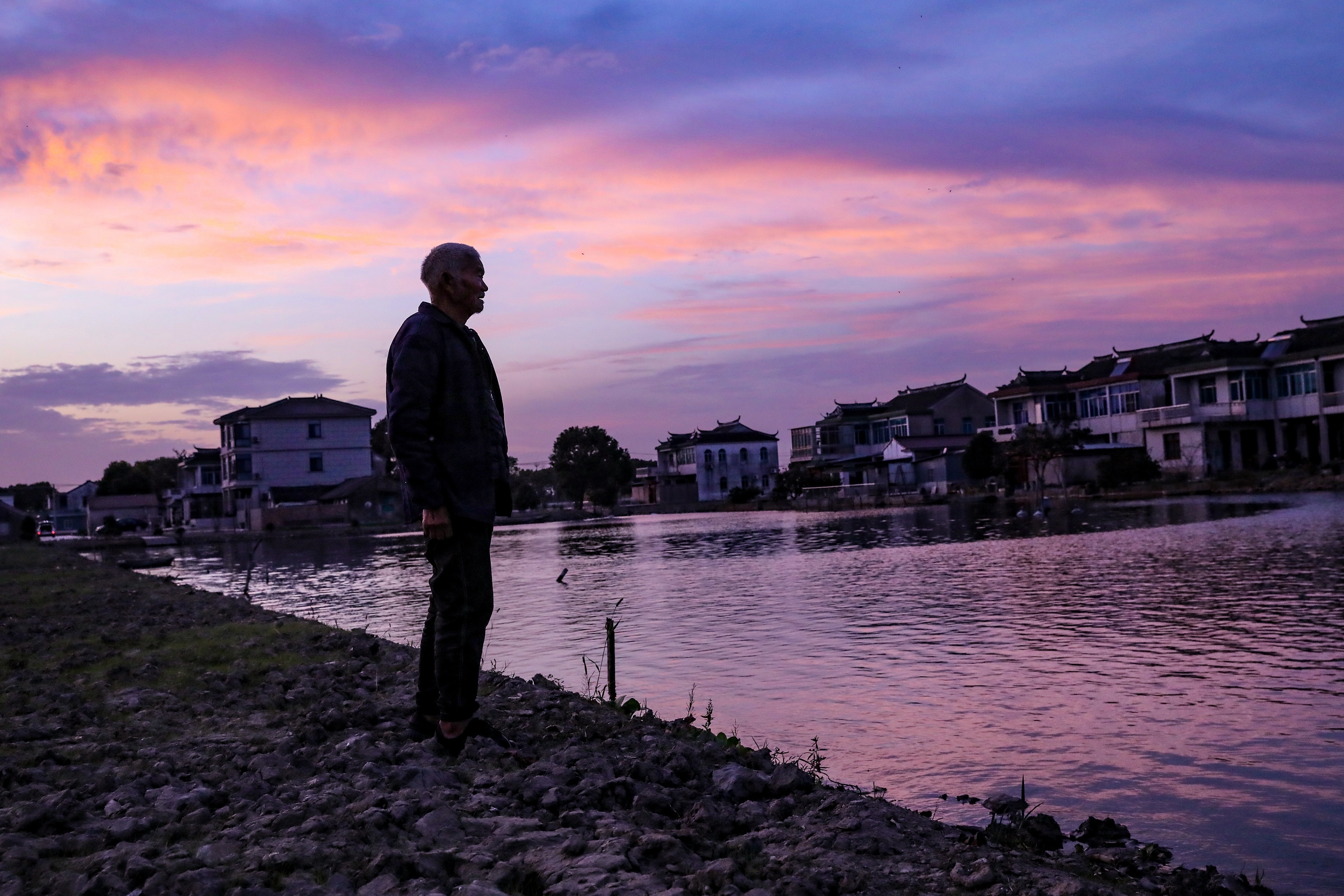 漫天霞光倒映水中,为眼前风景赋予别样色彩