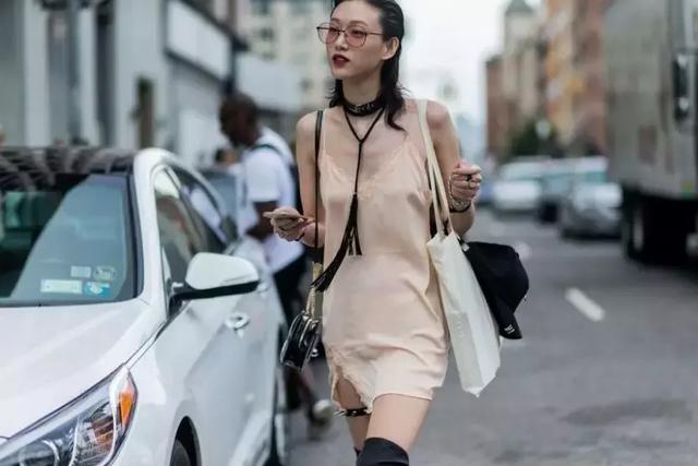 裸粉色的缎面真丝slip dress裙可以说是最浪漫的单品了,因为与夏日的口味最搭,清凉亲肤,小仙女们都喜欢。