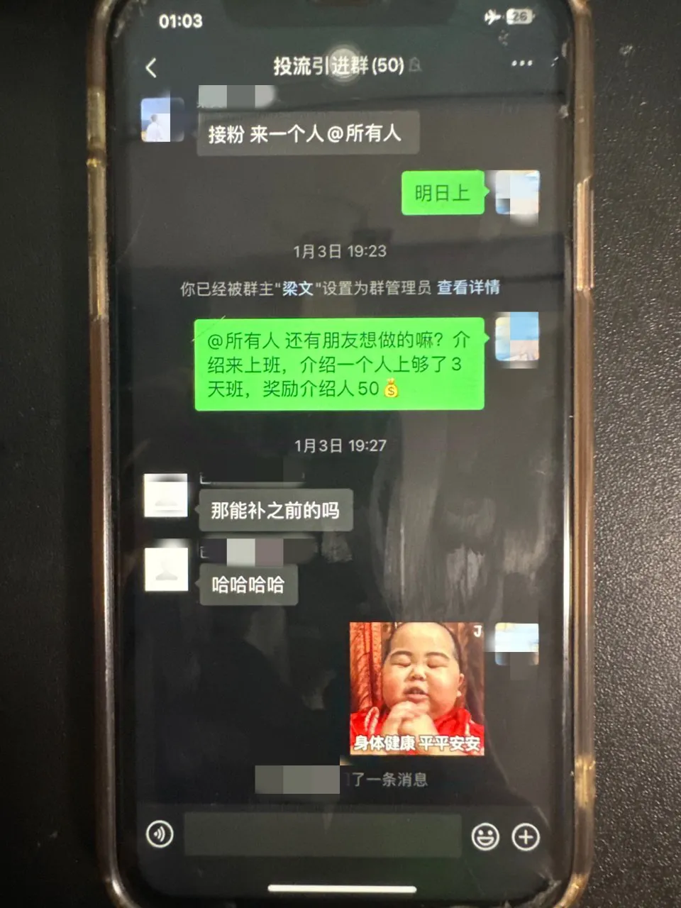 居民钱某称,前段时间收到一个陌生快递包裹,内有一份小礼品和一张二维码卡片,卡片内容为该商户为回馈老客户推出返利活动,扫描二维码即可参与。钱某便扫码添加了“客服”微信,随后被拉入一个微信群聊。