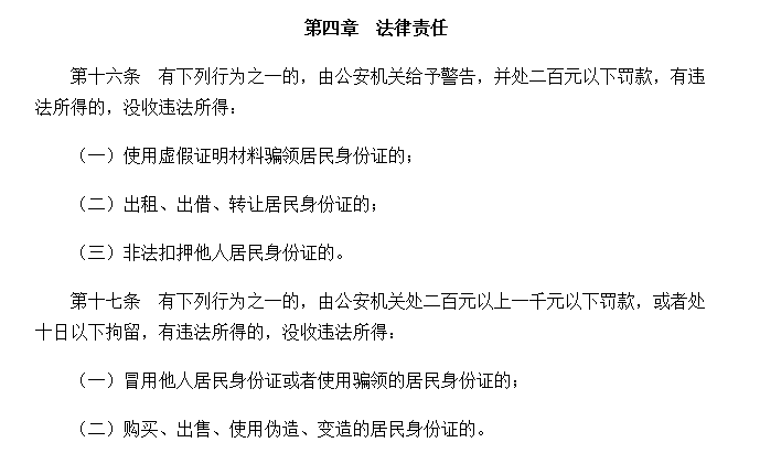 “当下对于身份证盗用、冒用的法律责任、惩罚力度偏轻。”解志勇说,现在的惩罚方式主要是拘留和罚款。实际上,应当按照《中华人民共和国民法总则》《中华人民共和国侵权责任法》《中华人民共和国居民身份证法》,甚至按照《中华人民共和国刑法》设置相关的法律责任,才能减轻、减少这种情况。
