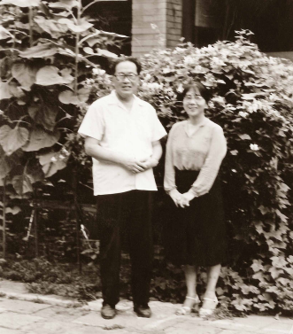 与张松鹤在人民英雄纪念碑《抗日游击战》浮雕泥稿前留影
