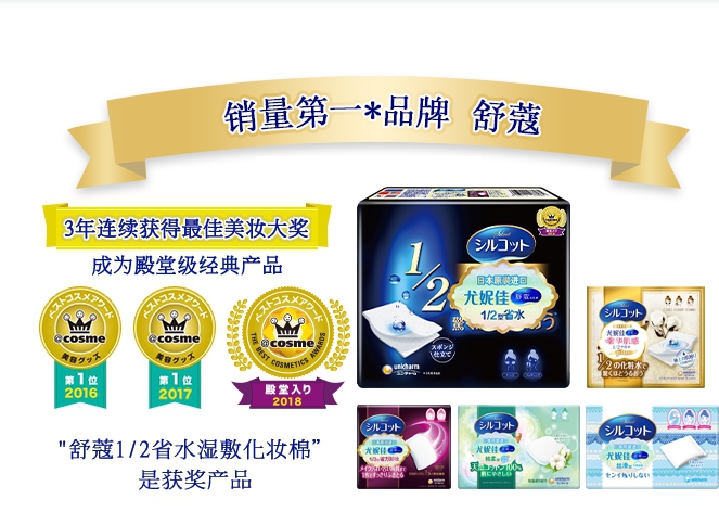 尤妮佳舒蔻(Silcot)是日本尤妮佳集团旗下化妆棉品牌,十大化妆棉品牌之一。舒蔻源自日本,原装进口,拥有适用于肌肤护理的高科技无纺布技术,柔软且吸收释水性能好,受到用户青睐。同时,因其不含荧光剂、无添加、无涂抹,为肌肤补水时无纤维残留,被誉为高端化妆水和卸妆的佳品。