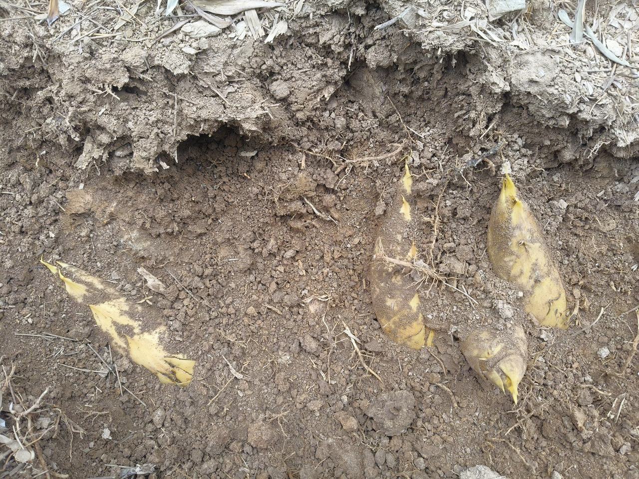 他介绍,临安本地冬笋呈现鲜明的特征——笋尖基本不分叉、笋尾略内收、中间鼓,外壳裹着湿润的黄泥,这是未露头的“土中笋”标志。而外地笋的笋尖分叉较为明显,尾部内收不明显。