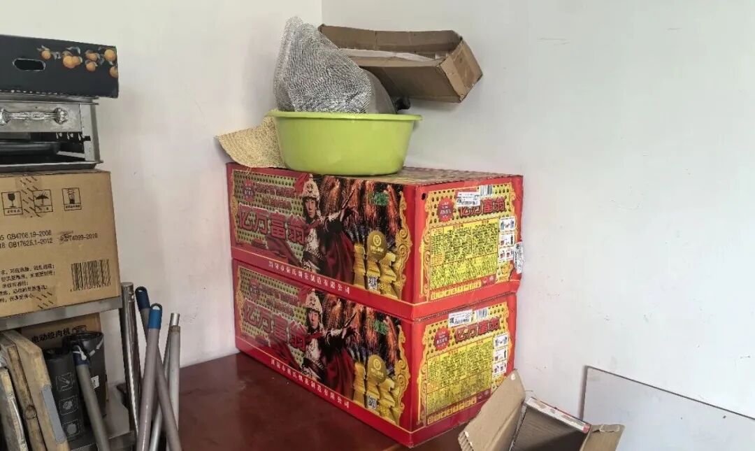 买回家后,他特地找了个堆杂物的客房,将这两个烟花和废旧纸箱堆在了一起。他甚至特意留意了下外包装,觉得标注的重量似乎也没超标,心想:“只是过年偷偷放两个,又不是拿来卖的,肯定没问题。”