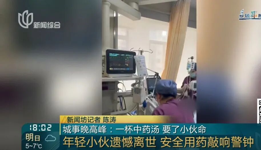 1月20日,上海35岁的夏先生因喝了一杯自己泡制的中药汤突然昏迷、不省人事,经过院方重症团队长达8天的全力救治,最终于28日晚上不幸离世。