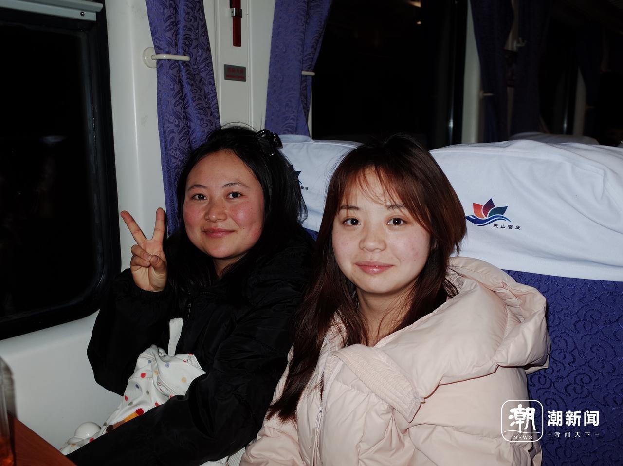 收到合影时,她们几乎同时“哇”了一声。“从来没在火车上拍过照!”她们说,这张列车上的合影跟这段寒假的打工经历都值得纪念。
