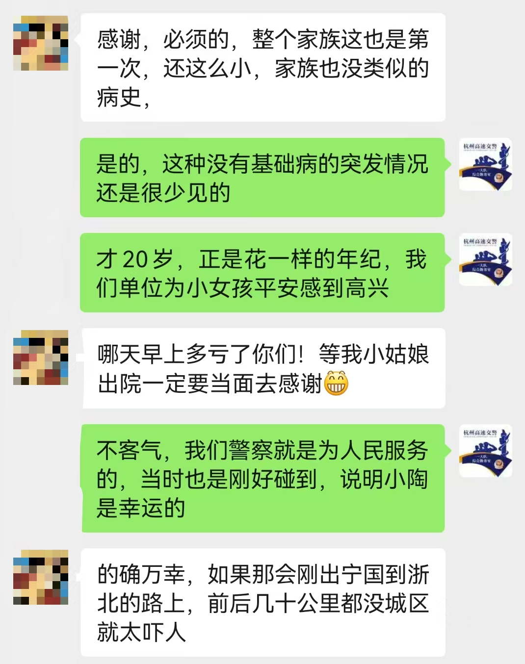 患者家属回忆事发经过仍心有余悸,对杭州交警倾力守护再三致谢:“还没来得及报警,交警就像天降神兵一样赶到,跪着救我女儿的命,是你们给了她第二次生命!”