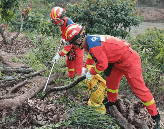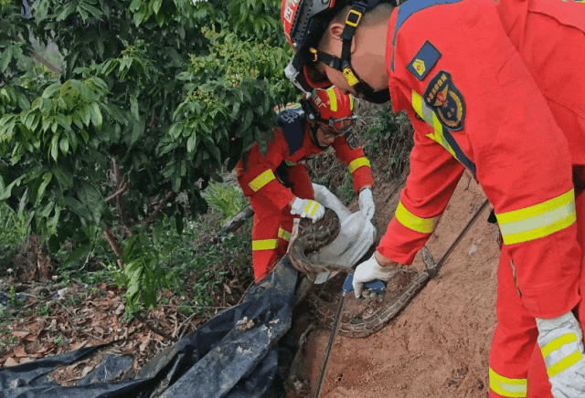 3条近2米蟒蛇缠绕藏身果园内,村民吓到报警!消防员:一个袋子都装不下