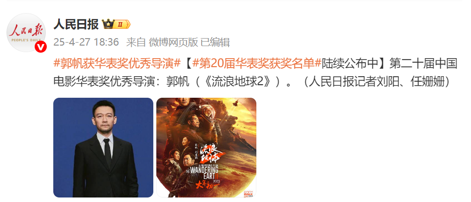 郭帆凭《流浪地球2》获华表奖优秀导演
