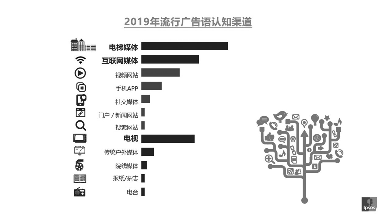 《2019年中国国内流行广告语受众调研报告》:去年八成品牌流行广告语来自分众电梯媒体