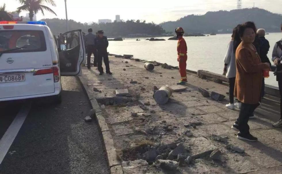 1月28日下午4:26分,珠海交警支队指挥中心接到报警,一辆红色小车沿着情侣路南往北方向行驶,撞破多卡石护栏,坠入海中。