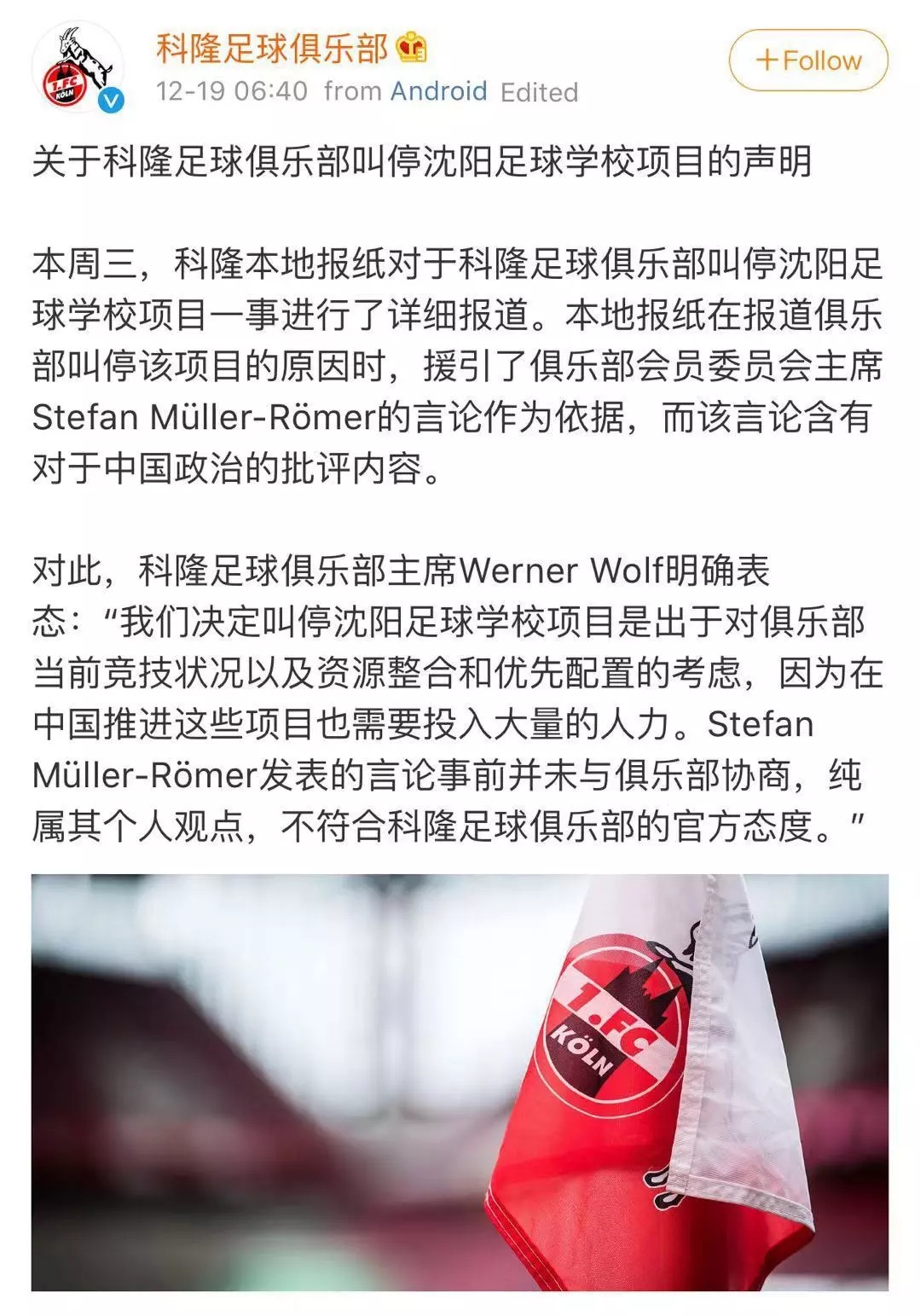 许多德国媒体认为,科隆俱乐部这一举措与德国足球运动员厄齐尔13日发表有关维吾尔族人问题的推特相呼应。不过,科隆俱乐部主席沃尔夫当天立即回应说,罗默的讲话是“私人意见”,不代表官方立场,该俱乐部停止与中方合作是“资源优先”问题。