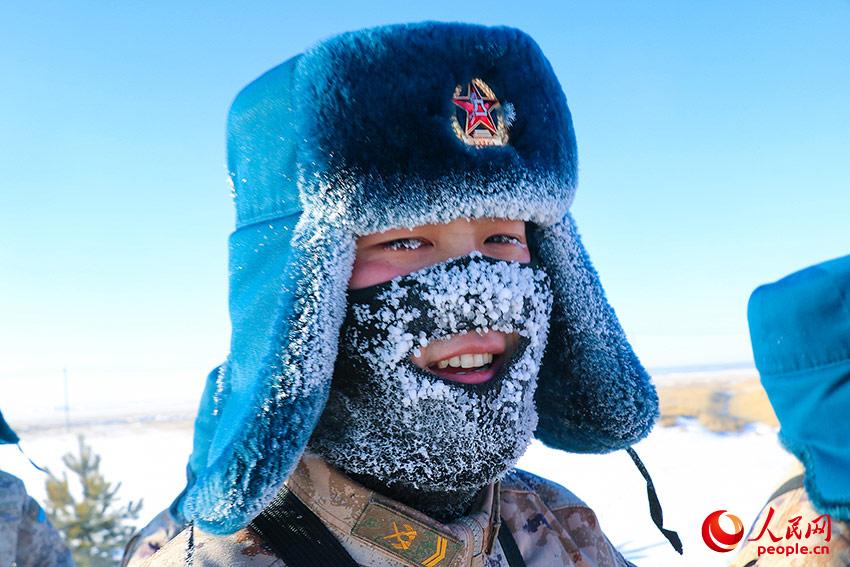 官兵不畏严寒、精神饱满。