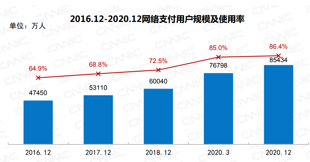 《报告》显示,截至2020年12月,我国网民规模达9.89亿 ,较2020年3月增长 8540万,互联网普及率达 70.4%,较 2020 年 3 月提升 5.9 个百分点。