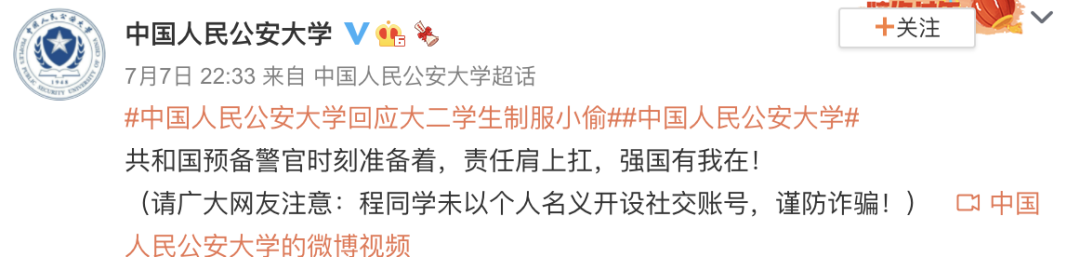 中国青年报(ID:zqbcyol 记者:张小松 编辑:李丽 视频制作:实习生 江嘉琪)综合:@中国人民公安大学、平安湖北等。