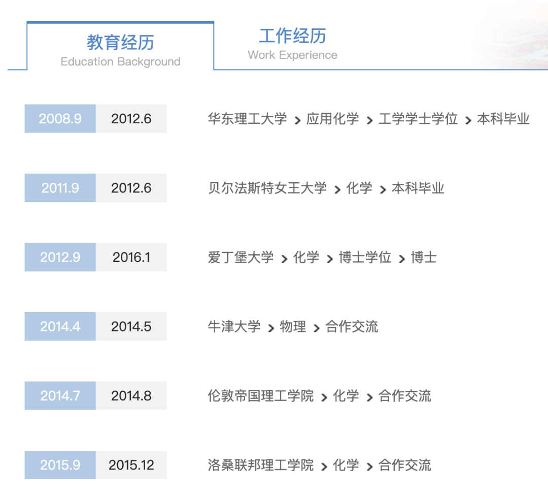 在研究方向一栏,她这样写道:正宗化学系本科加博士毕业生,本该专心捣鼓瓶瓶罐罐,因为“拯救世界”的梦想开始研究太阳能电池。爱做五颜六色的染料,喜欢设计长得好看的分子……