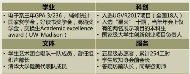 前三年推研成绩年级第一,“星火计划”第十二期学员。参与的“智能魔方”项目获得清华大学第三十六届“挑战杯”学生课外科技作品竞赛一等奖。