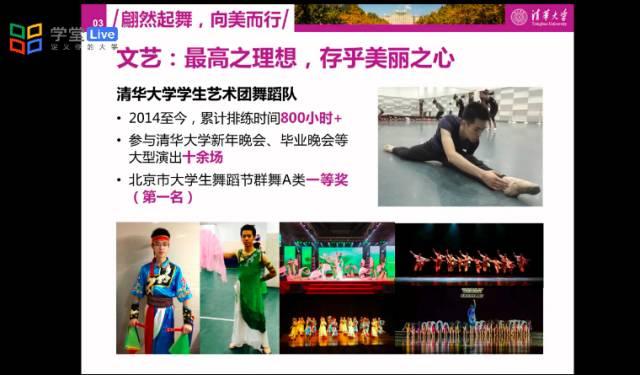 沈天成是清华大学学生艺术团舞蹈队的骨干队员,向美而行的路上,每一次痛苦摔倒和精益求精都是自强不息的深刻理解;纵横赛场,他用小小的毽子打开运动的大门,在2016年同时打破单脚踢毽、双脚盘踢、三人踢毽三项校纪录,为做好计算机系学生会体协的工作,还把自己变成了学校赛事数据“行走的活字典”;参与社工,他始于热情,继于责任。