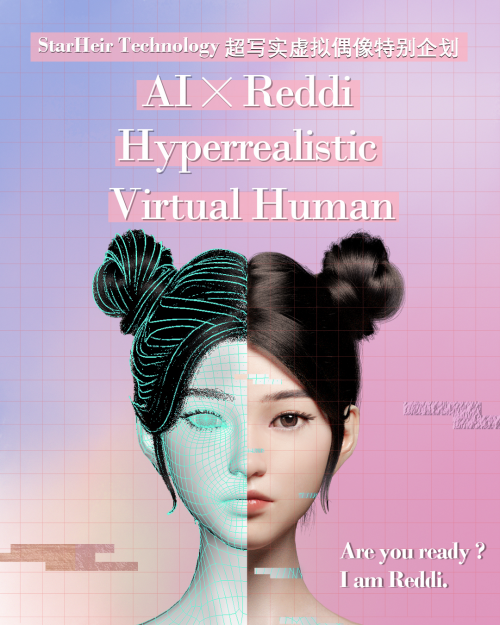 世悦星承科技(StarHeir Technology)推出的新生代虚拟女孩Reddi,属于中国超写实虚拟技术领域严格意义上的最高水平,堪比目前美国虚拟女孩Lil Miquela和日本虚拟女孩Imma。