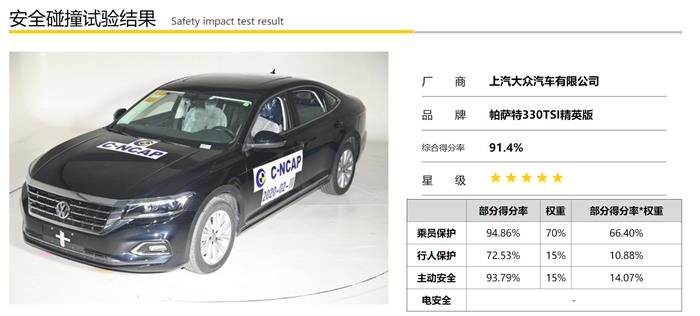 而在最近一次由中汽中心组织的C-NCAP碰撞测试中,帕萨特得到了五星评级。