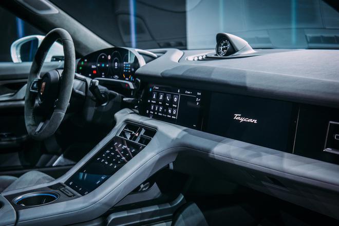 与此同时,内饰中采用了4块屏幕而增添不少科幻感,中控台上部的2块屏幕尺寸为10.9英寸(副驾驶一侧的交互屏幕为选装配置),采用了保时捷的全新交互界面设计,中控台下部的8.4英寸斜置屏幕则主要对电量与充电状态查看、空调控制、手写板等的控制,具备触觉反馈和防误的操作功能。