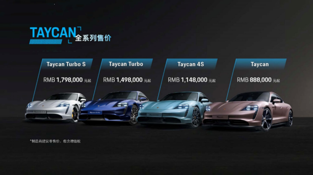 88.80万起Taycan 4S114.8万起Taycan Turbo149.8万起Taycan Turbo S179.80万起