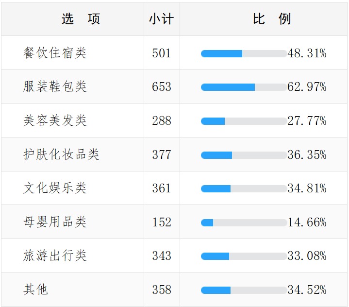 其他依次是文化娱乐类、其他类和旅游出行类。