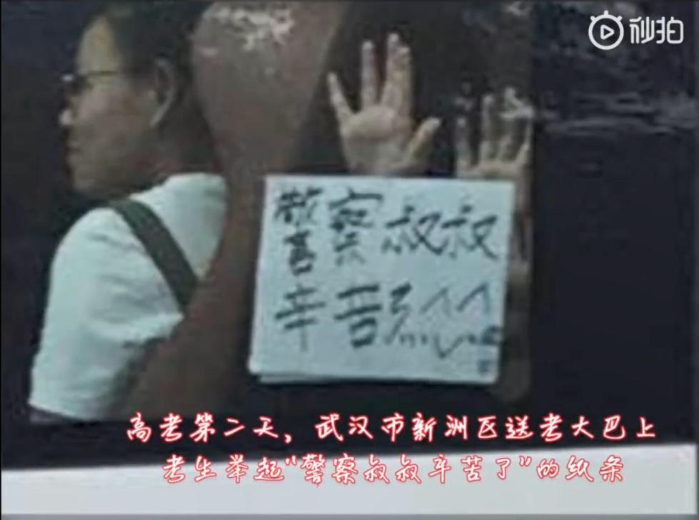 她说:“这两天天气特别热,我们坐在开着空调的大巴车上穿着短衣短裤都觉得受不了,可是这些警察叔叔从一早就在这里站着了,太阳那么大,我觉得他们很辛苦,就想着用字条鼓励一下警察叔叔!”