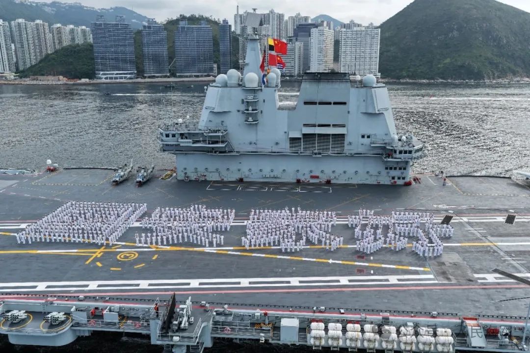 7月3日,在香港回归祖国28周年之际,由海军航空母舰山东舰,导弹驱逐舰延安舰、湛江舰及导弹护卫舰运城舰组成的航母编队,携多型舰载战斗机、直升机和陆战队员,于3日上午抵达香港特别行政区,开启为期5天的访问活动。香港特别行政区政府在昂船洲军营为舰艇编队访港举行隆重欢迎仪式。