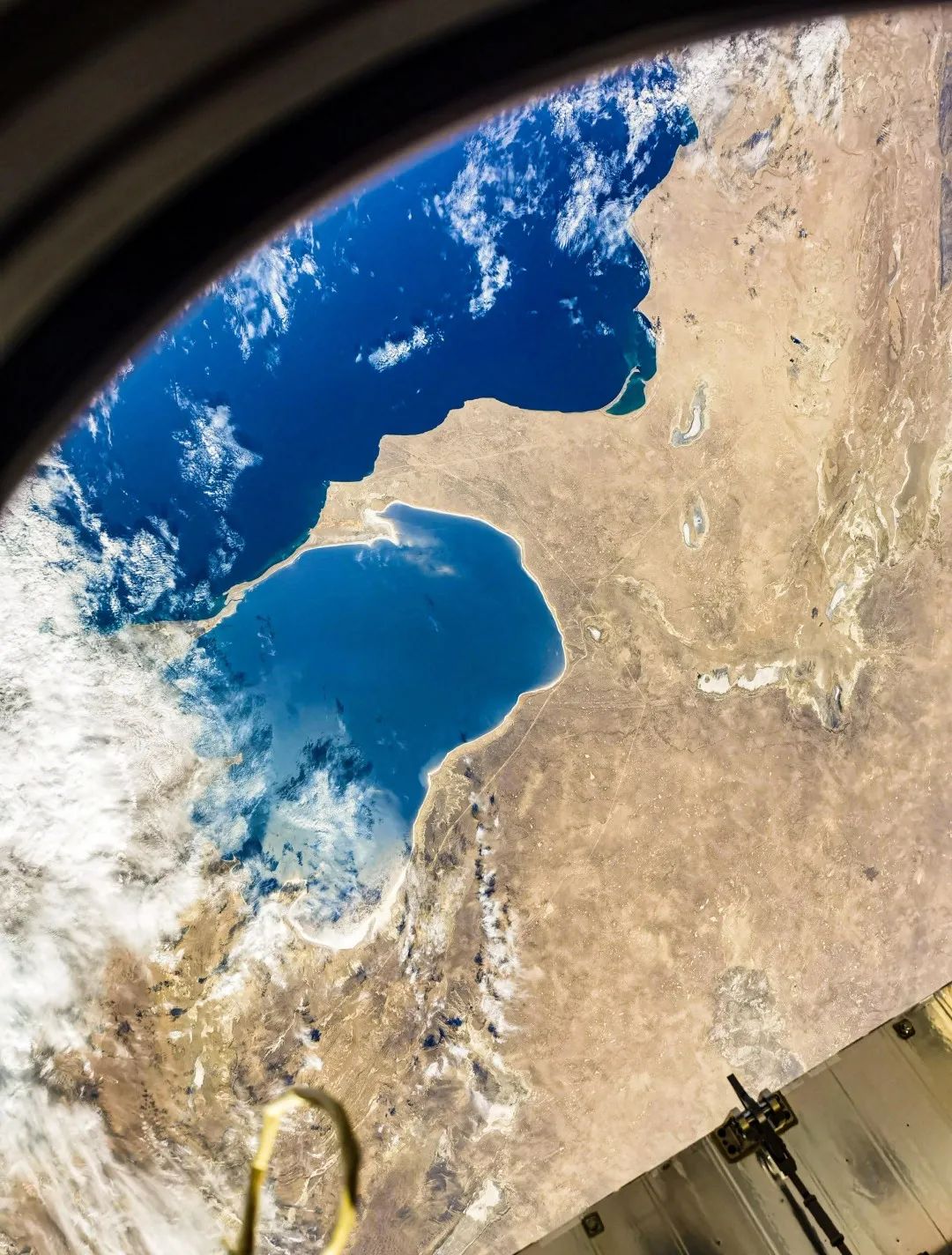 2012年,神舟九号航天员乘组拍下“里海曲线”,一晃9年过去,里海 仍然在原地静静地映出碧海蓝天。从景海鹏、刘洋、刘旺到聂海胜、刘伯明、汤洪波,大气层外,中国载人航天一直陪伴着这颗美丽的星球。