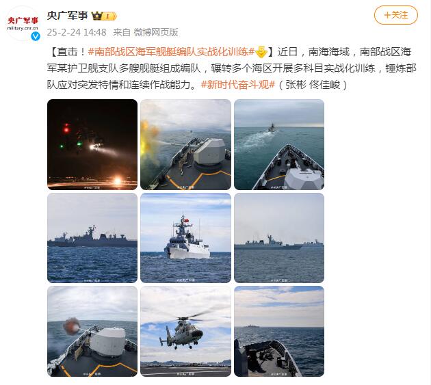 近日,南海海域,南部战区海军某护卫舰支队多艘舰艇组成编队,辗转多个海区开展多课目实战化训练,锤炼部队应对突发特情和连续作战能力。