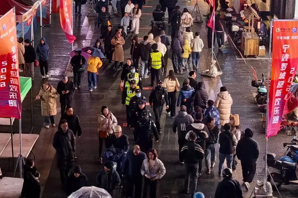 跨年夜,海曙街头巷尾灯火璀璨,商圈景区人流如织,喜庆洋溢的氛围中,海曙公安用坚守与担当,护航节日祥和,守护万家平安。