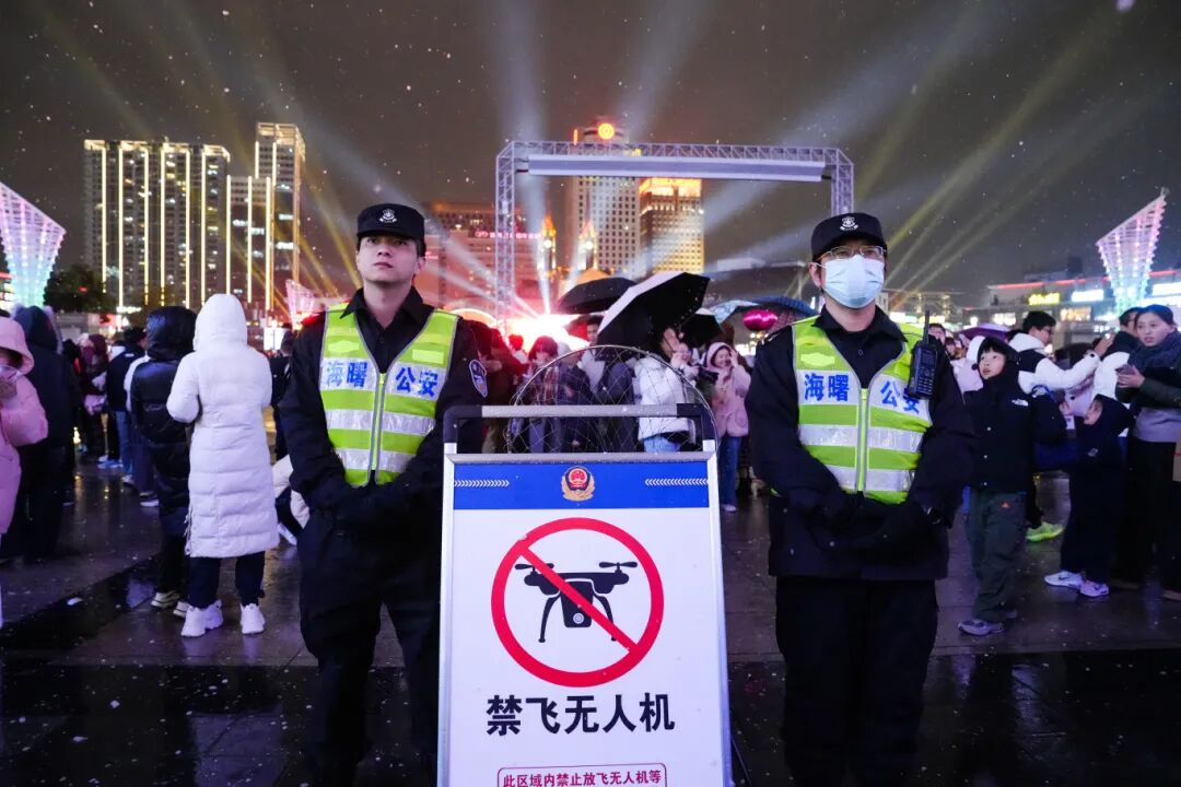 安全无小事,责任重如山。跨年夜安保期间,执勤警力全力以赴为群众保驾护航,重点针对管制器具及爆炸性、易燃性物品等风险隐患开展排查,严打危害空域安全的“黑飞”行为。