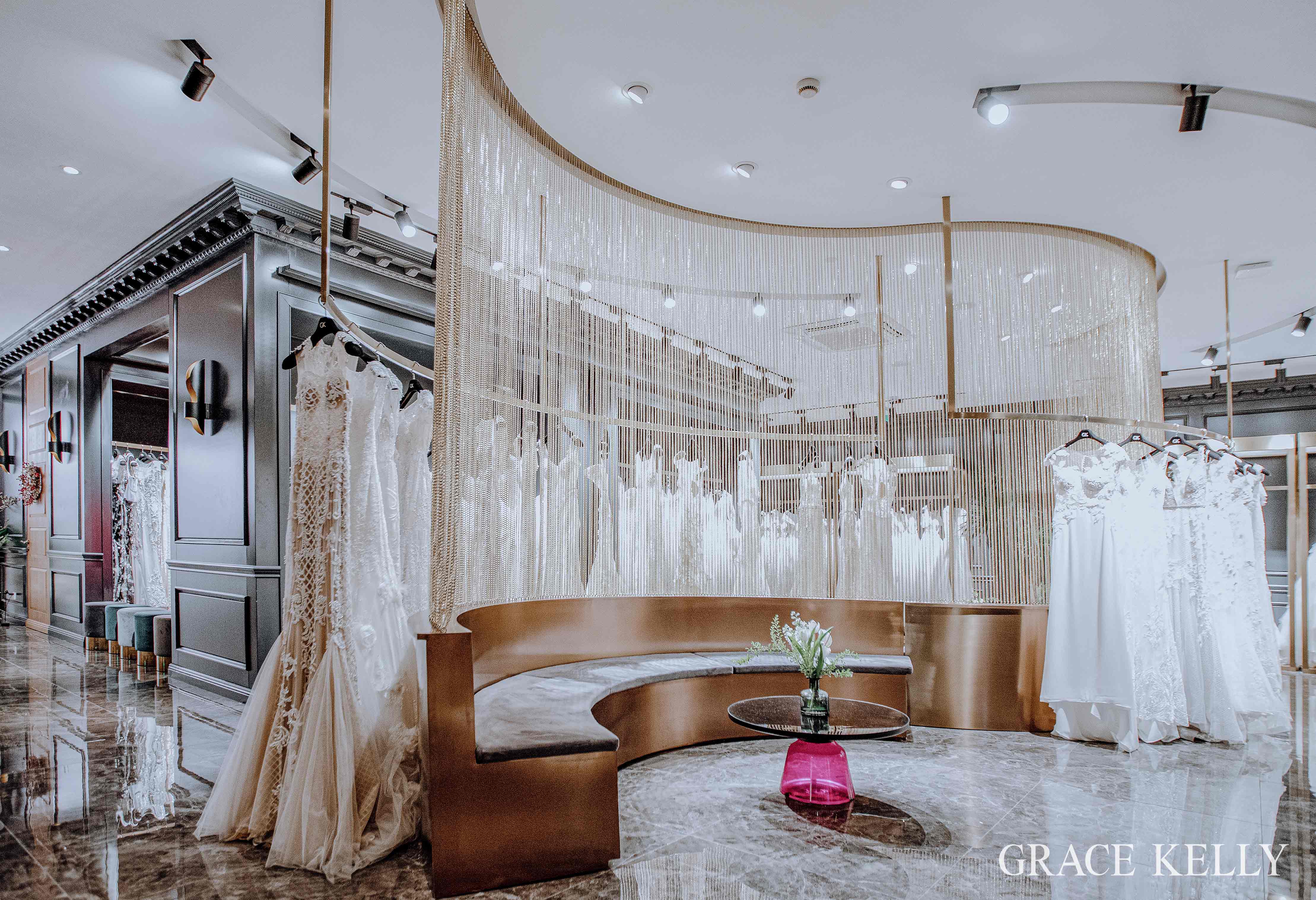 在 GRACE KELLY位于上海江苏路40号近6000平米旗舰店中,拥有来自全世界近三十个知名品牌的婚纱礼服,GRACE KELLY专属礼服师为宾客挑选心仪的款式,并为她们婚礼当天的整体造型提供专业建议。当日,来自西班牙王室珠宝品牌 ARTE的全新 Desco系列令前来挑选嫁衣的新娘在华服与珠宝之间熠熠生辉。