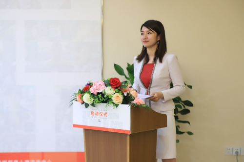 ▲广州市仁信慈善基金会秘书长姜梓跃向与会嘉宾介绍基金会的公益品牌项目