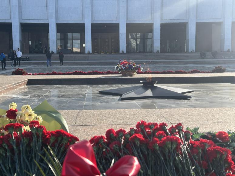 当地时间5月6日下午,胜利广场上的长明火两侧放满鲜花。刘少华 摄