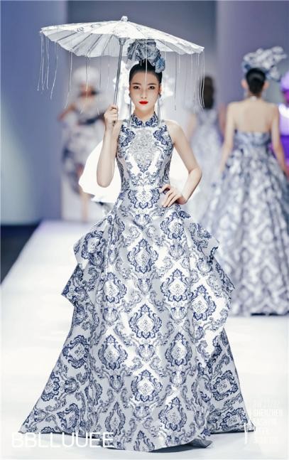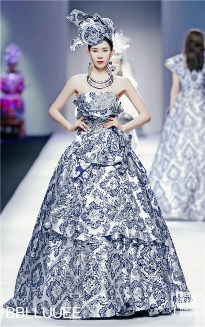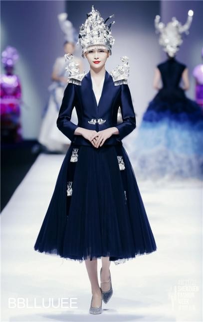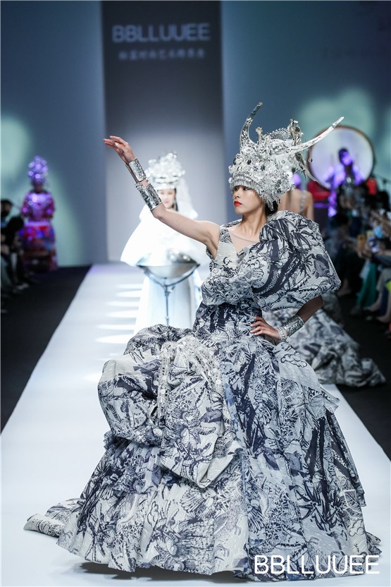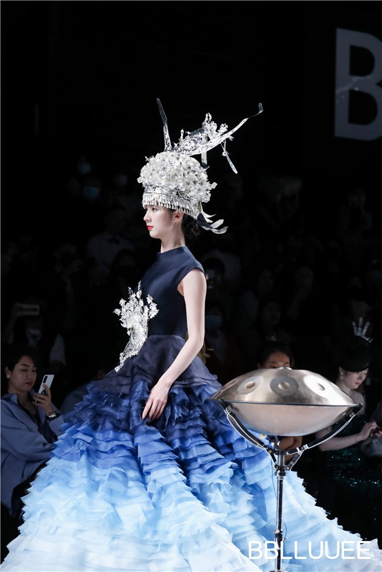 在BBLLUUEE粉蓝时尚艺术跨界秀中,能很明显看到传统民族元素的再造革新。