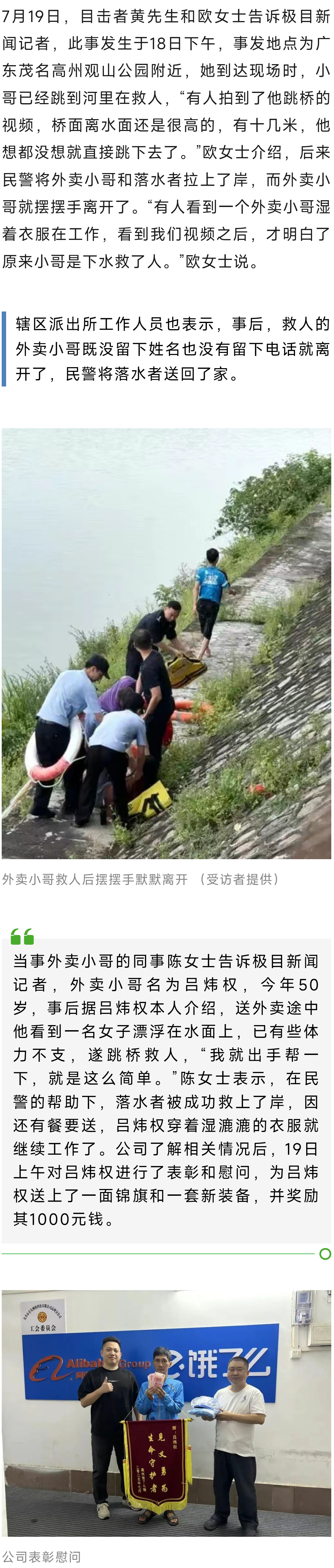 茂名一外卖小哥从10余米高桥面跳入河中救人,事后摆摆手默默离开:我还有餐没有送