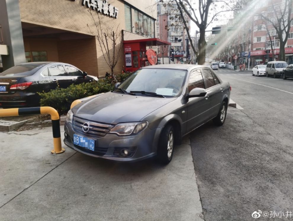 斜停在人行道上