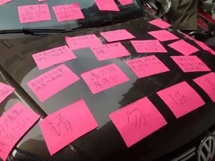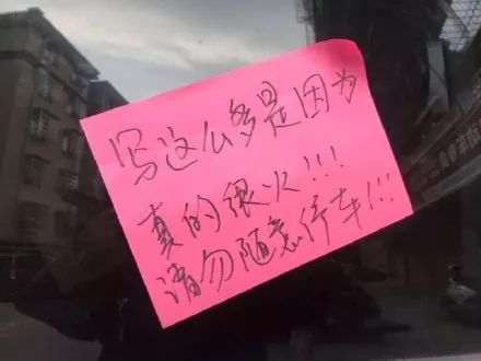 发现车上贴了一张纸条
