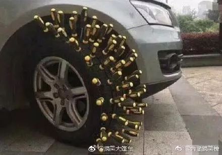 车胎扎满了螺丝刀