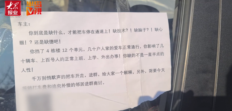 你挡了4栋楼12个单元,几十户人家 的正常出行,你影响了几十辆车、上百号人的正常上班、上学、外出办事。