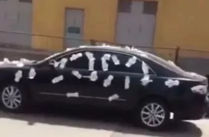 也有网友认为,再怎么着,也没必要用胶水给人粘一车的纸,想清理多费劲啊。