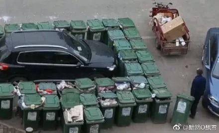 垃圾桶码得整整齐齐