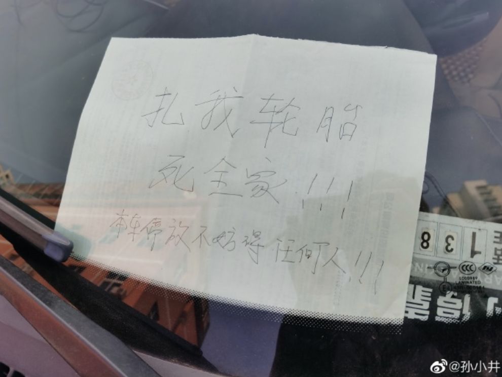 前风挡玻璃上有张纸条